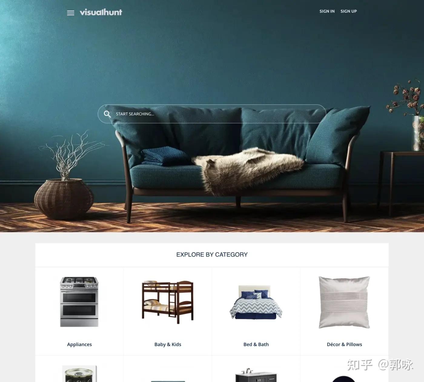 Visual Hunt 拥有超过 10 万张 CC0 图像,无须注册、无需标记使用,而且可以通过颜色来搜索图像,也提供各种种类的居家物件照片,特别推荐给室内设计师。