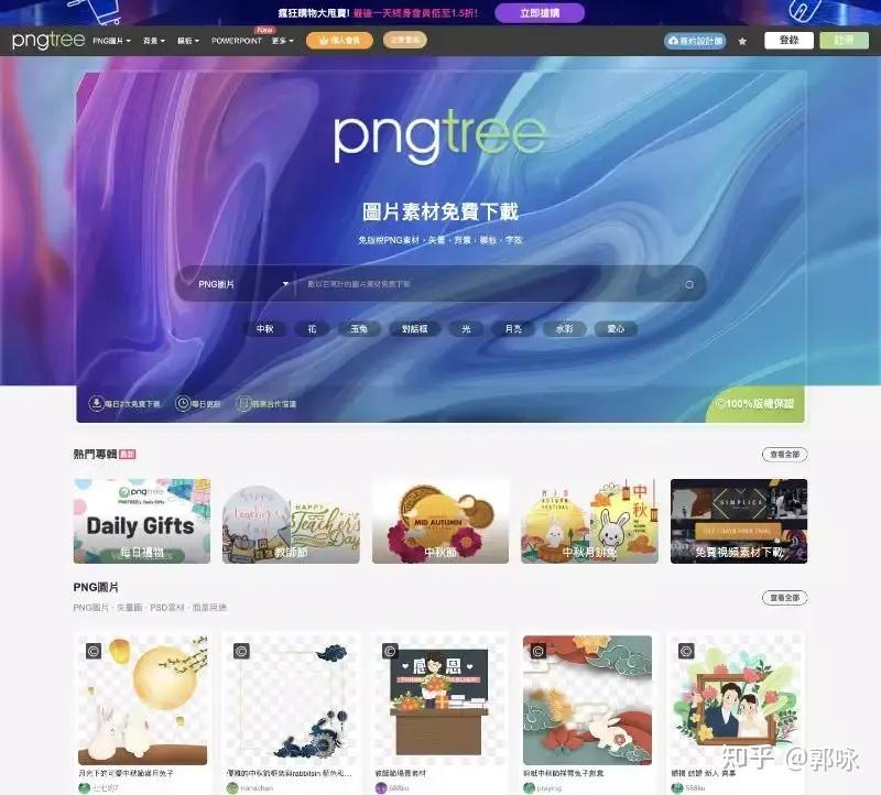 Pngtree 提供了大量 PNG 图像、模板、文本等,如果没有加入付费方案,你一天最多只能从Pngtree 上下载两次且使用时必须标记作者,也无法商用,有大量 PNG 图像需求的创作者可以斟酌一下是否要参与付费方案。