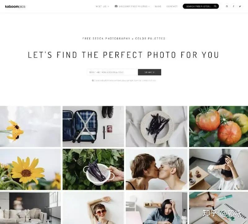 Kaboompics 有着轻爽简约的风格,并提供他们专属的、类似 CC0 条款的许可证。他们最方便的功能是可以利用色号或某种色调来寻找图像,很适合喜欢特定风格的创作者使用;下载图像时,还可以选择各种不同的尺寸,非常贴心。