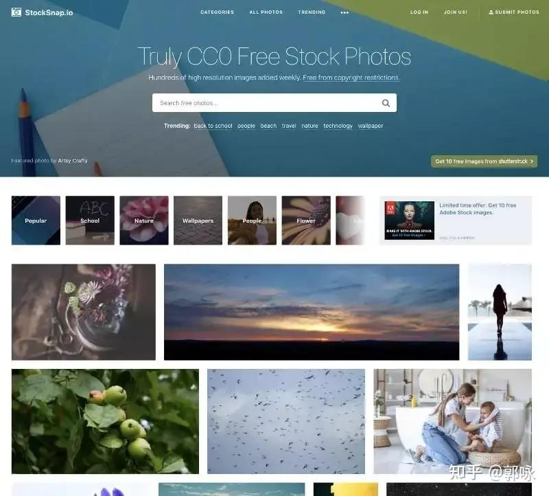 http://Stocksnap.io 让你可以下载众多 CC0 图像,是一个由多位设计师联合建造的高品质网站。此外,他们也有「成为创作者」的功能,让你可以上传自己的作品,并加入 Stocksnap 的团队。