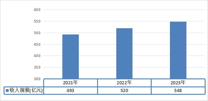 图表:2021-2023年制服行业收入规模分析