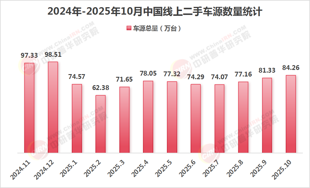 2025年3月起逐步回升,10月达84.26万,显示市场复苏及线上车源供给能力增强。